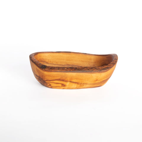 Measuring approximately 6.7 inches in length, it’s perfectly sized for holding jewelry, loose change, snacks, or as a simple decorative accent on shelves, counters, or tabletops. Each bowl is unique, showcasing the rich color variations and intricate lines of Mediterranean olivewood.